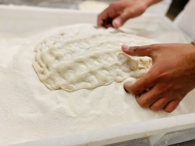 L'impasto ad alta idratazione, la digeribilità eccezionale, la lunga lievitazione di 48-72 ore e la lavorazione a mano ne garantiscono un sapore autentico tipico della pinsa romana.